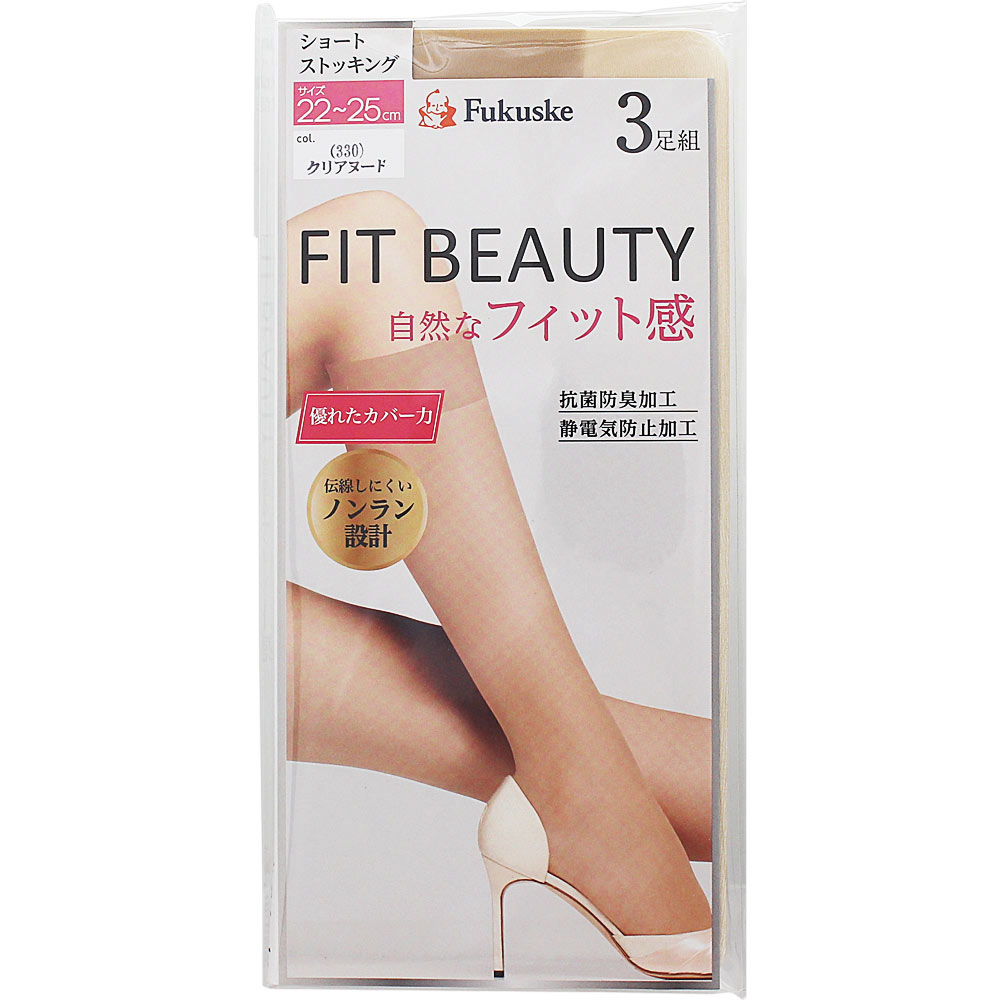 福助 FIT BEAUTY ショートストッキング 22-25 3足組 クリアヌード 330