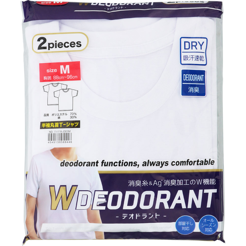 紳士2枚組W消臭Tシャツ 半袖丸首 M 2枚 白
