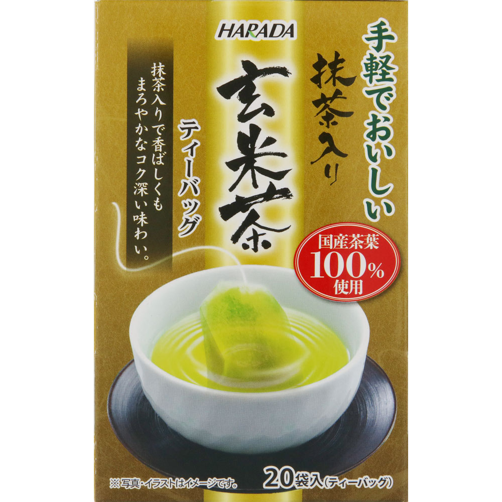 抹茶入りで香ばしくもまろやかなコク深い味わい玄米茶です。国産茶葉を100%使用。個包装の簡単便利なティーバッグ。20個入り。