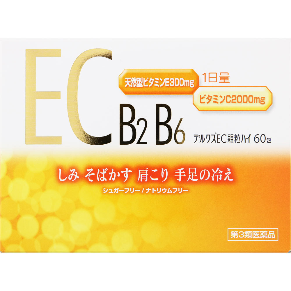 「寒さや血行障害で肩や首筋がこる・手足が冷える…」。そんな症状が続くと知らず知らずのうちに新陳代謝も低下しがちです。「デルクスEC顆粒ハイ」は、<ビタミンE><ニコチン酸>が血行を促進することにより、肩こり、手足の冷えを改善します。また、新陳代謝を促すことで、しみや日焼けによる色素沈着にも効果があります。