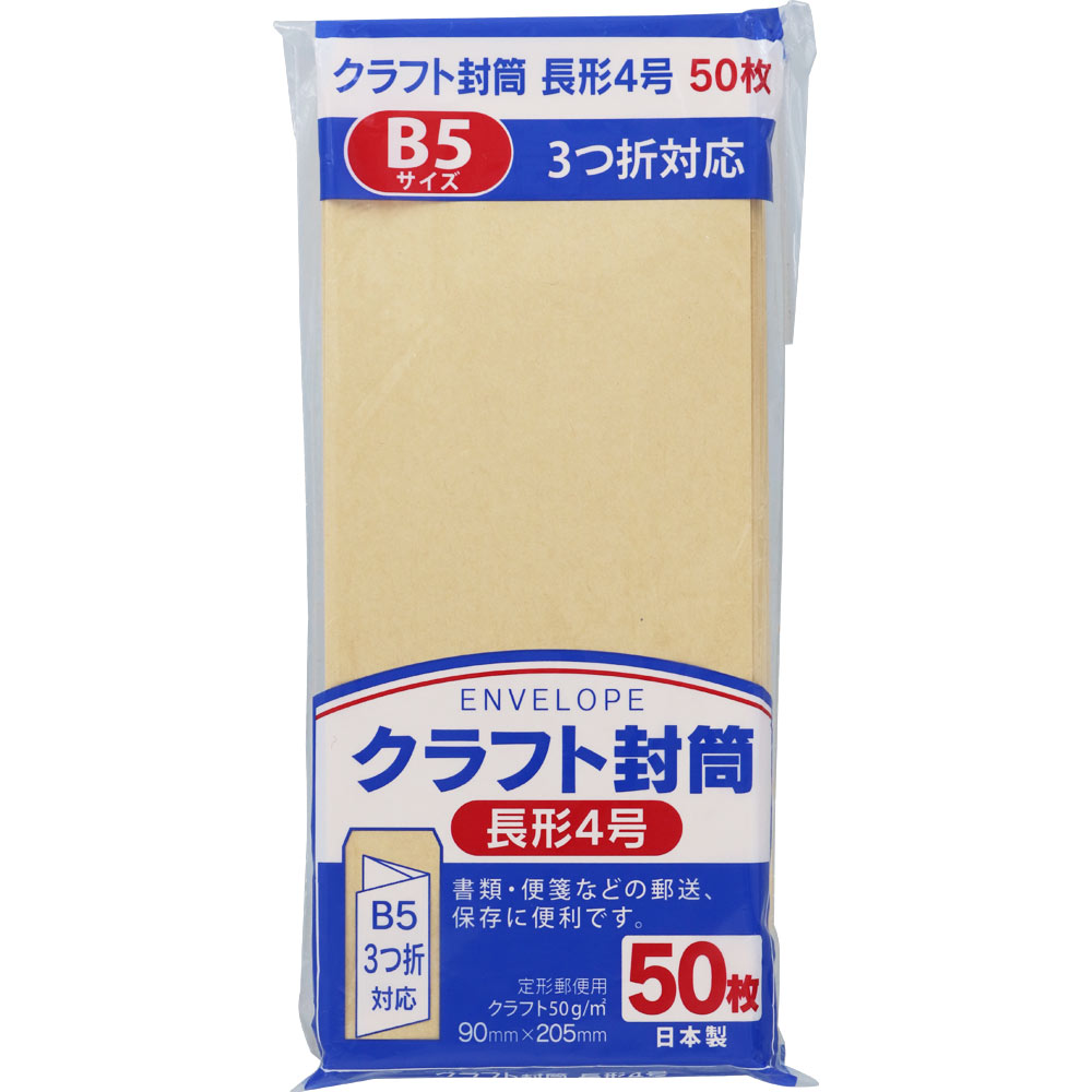 NID クラフト封筒長型4号(B5三つ折り対応) 50枚