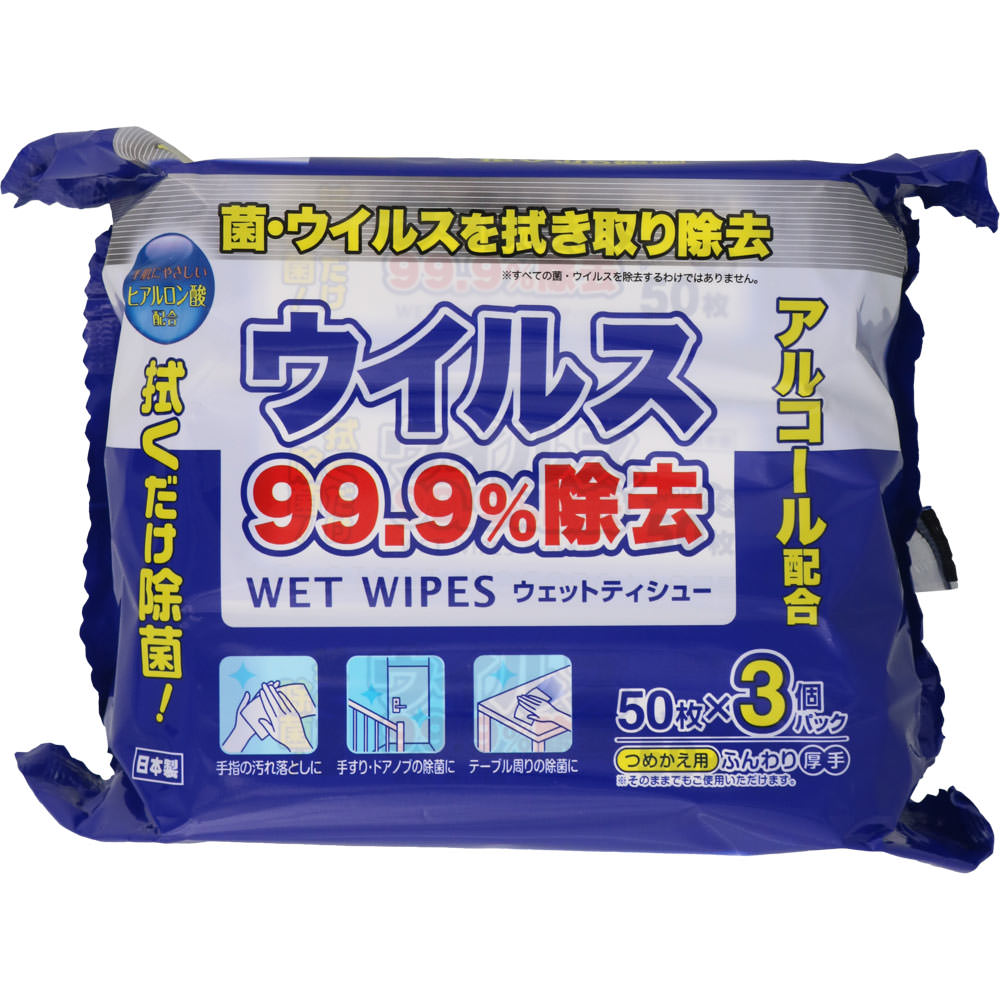 NID ウイルス99.9%除去ウェットティッシュ 50枚×3個