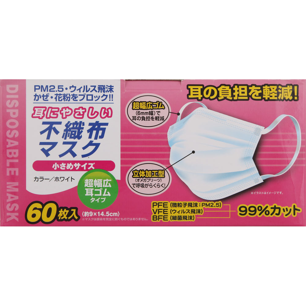NID 耳にやさしい不織布マスク小さめ 60枚 ホワイト