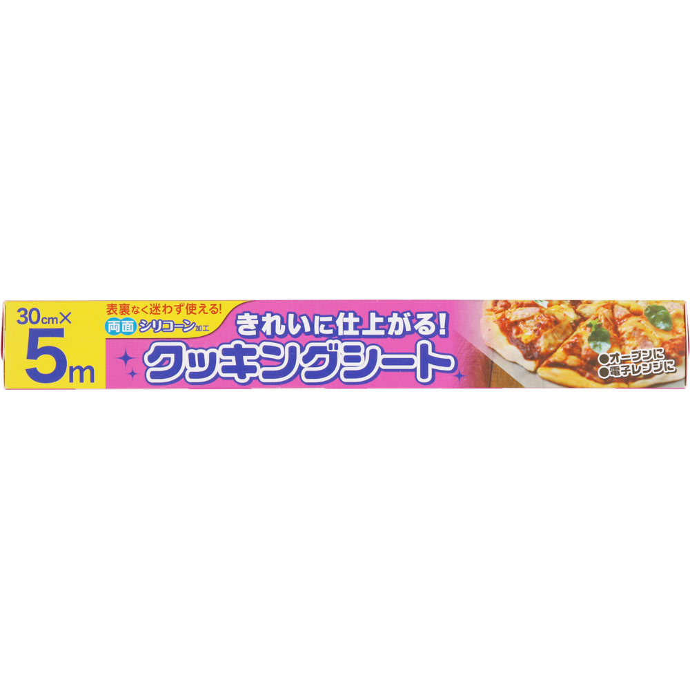油や汁を通さずに、加熱料理をおいしく仕上げるクッキングシートです。両面シリコーン加工が施してあるため、油や水を下に通しません。また、こびりつきにくくスルッと料理がはがれてきれいに仕上ります。天板や器具を汚さないので後片付けがとてもカンタンなのもポイントです。
