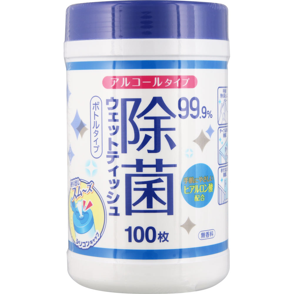 手肌にやさしいヒアルロン酸配合の除菌ウェットティッシュ。お食事前の手指の汚れ落としに、冷蔵庫、テーブル等の除菌に、キッチン周りの軽い汚れ落としに。