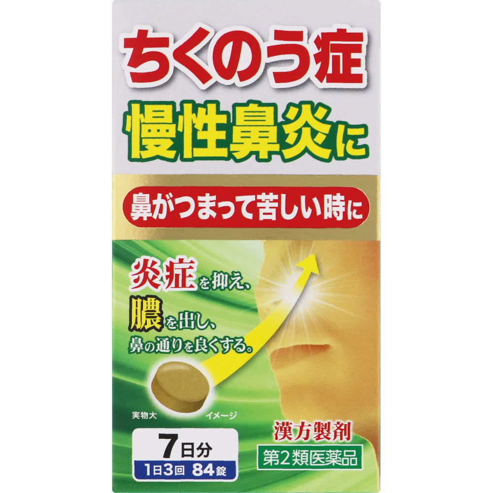本剤は、漢方の古典『外科正宗(げかせいそう)』載の処方である辛夷清肺湯(しんいせいはいとう)にもとづいてつくられたエキスを、飲みやすく錠剤としたものです。濃厚な鼻汁が出たり、鼻がつまり、乾燥気味で熱感があるような蓄膿症(副鼻腔炎)や慢性鼻炎などを改善する漢方薬です。