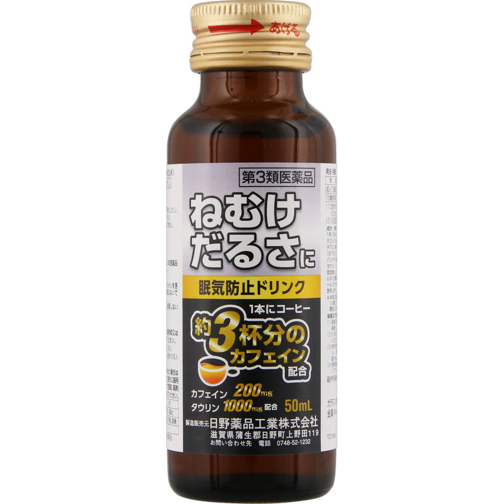 コーヒー味の飲みやすい50mLのミニドリンク剤です。一瓶中カフェイン200mg、タウリン1000mgを含み、ねむけや倦怠感におすすめです。