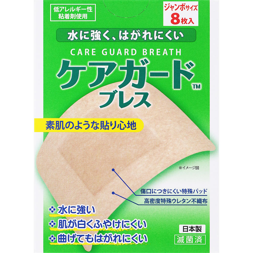やわらか伸縮素材を使用した、フィット感抜群の救急バンです。はがれにくいシリコーン粘着剤を採用しています。蒸れにくく白くなりにくい、特殊ウレタン不織布テープ。はっ水効果(フッ素コーティング)で水をはじきます。