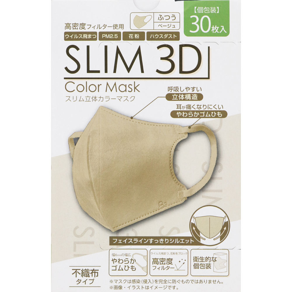 息のしやすい立体構造で、やさしく顔にフィットします。一枚ずつ包装されているので、サッとカバンに入れても衛生面で問題なく、持ち運びに便利です。ベージュ。