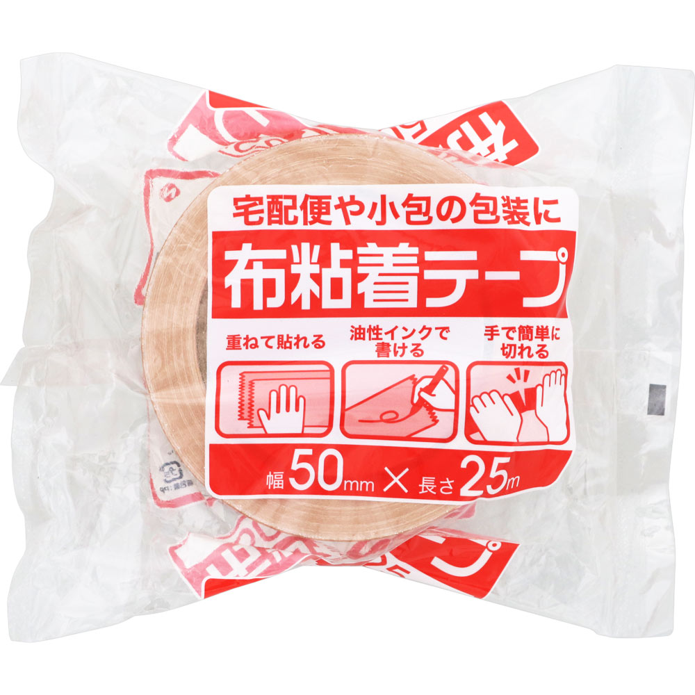 手で簡単に切れる 宅配便や小包の包装に。油性インクで文字を書いたり、テープを重ねて貼ったりできる布粘着テープです。手で簡単に切れるので、梱包やゴミ袋の口止めに便利にお使いいただけます。