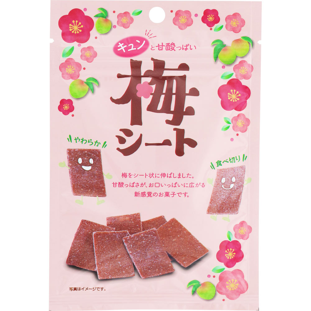 キュンと甘酸っぱい 梅をやわらかい食感のシート状に伸ばしました。甘酸っぱさが、お口いっぱいに広がる新感覚のお菓子です。梅好きな方に、口寂しいときにぴったりです。