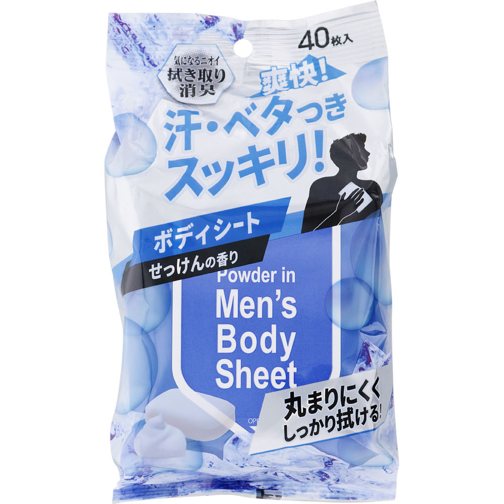 男性用ボディシートです。丸まりにくくしっかり拭けるので使いやすい。たっぷり使える40枚入り。