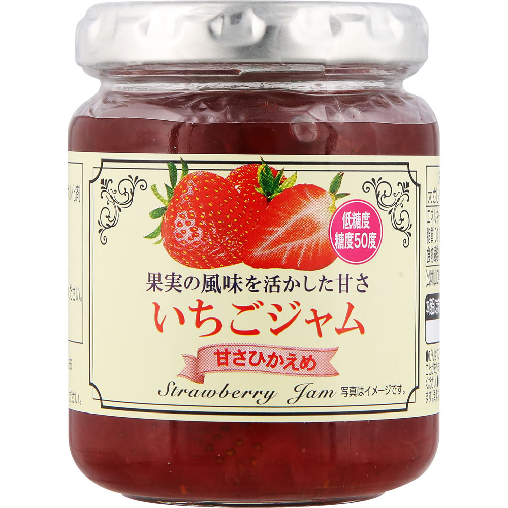 素材そのものの風味を生かした甘さ控え目、低糖度(糖度50度)のいちごジャムです。パンやホットケーキ、クラッカーなどに塗ってお召し上がりください。甘過ぎるのが苦手という方にもおすすめです。