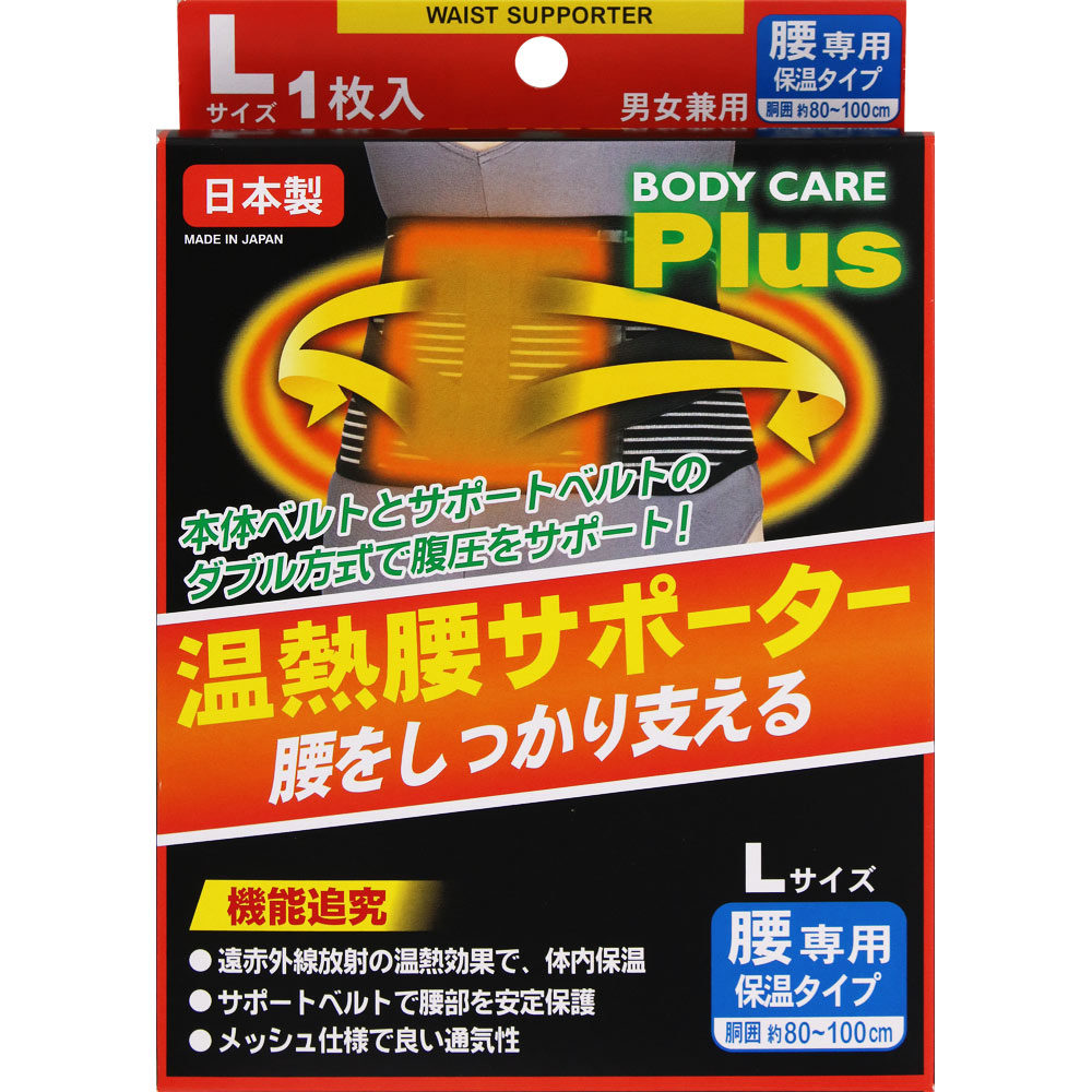 本体ベルトとサポートベルトのダブル方式で腹圧をサポートし、患部の保護、適度な圧迫、固定が得られます。遠赤外線放射の温熱効果で、体の内部より温めて血行を良くします。メッシュ編構造の通気性と吸汗速乾性の特性をもつ素材で、オールシーズン使用できます。男女共用。