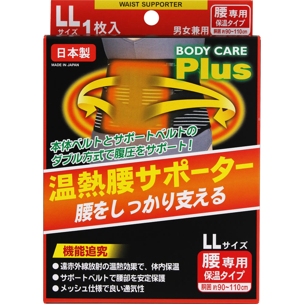 本体ベルトとサポートベルトのダブル方式で腹圧をサポートし、患部の保護、適度な圧迫、固定が得られます。遠赤外線放射の温熱効果で、体の内部より温めて血行を良くします。メッシュ編構造の通気性と吸汗速乾性の特性をもつ素材で、オールシーズン使用できます。男女共用。