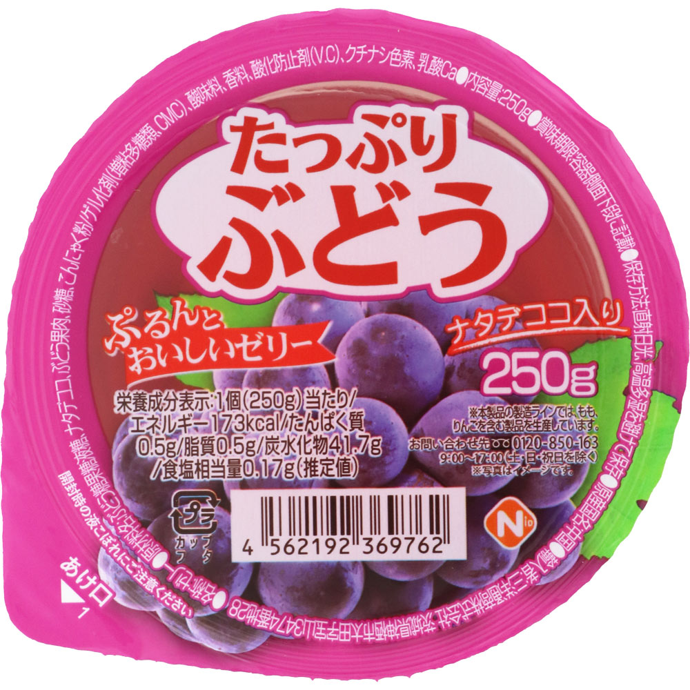 食感が楽しい、ぶどうの果肉とナタデココが入ったこんにゃくゼリーです。おやつに、小腹満たしにどうぞ。