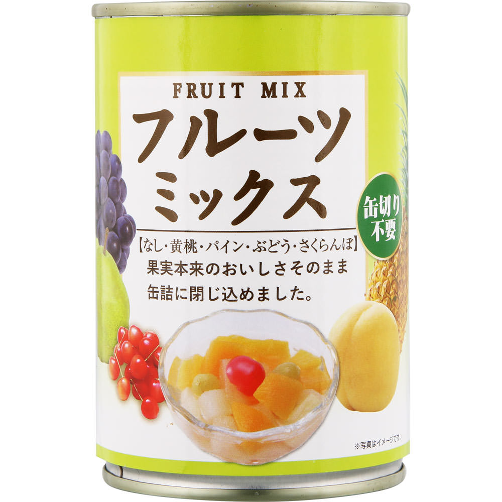 梨、黄桃、パインアップル、ぶどう、さくらんぼを一度に味わうことができます。フルーツポンチや、さらにアレンジを加えて変身させてみませんか? 常温で保存ができて、長期のストックも可能なので、災害時の備えとしても。