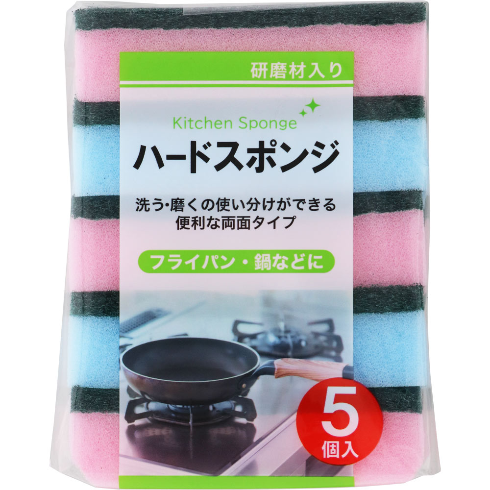 フライパン・鍋などに。汚れをしっかり落とせる研磨材入りの不織布と、泡立ち豊かなスポンジの組み合わせで、両面で使い分けができます。5個入り。