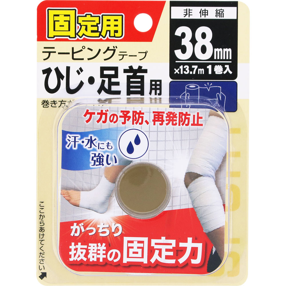 関節や筋肉の過度の動きを制限するための固定用テーピングテープです。水や汗に強く、固定力に優れています。ケガの予防や再発防止、応急処置などにお使いください。ひじ・足首用。