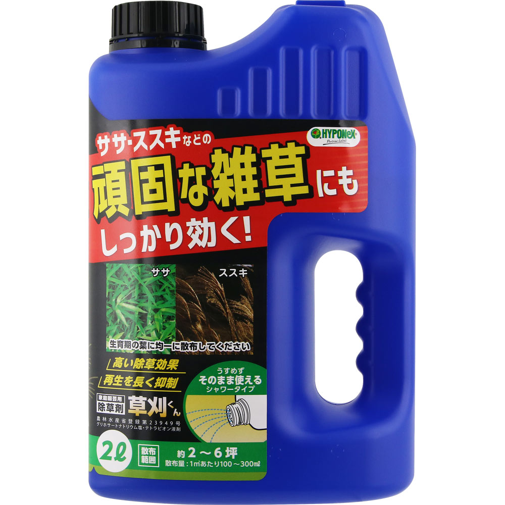 防除困難といわれるススキやササなどの頑固な雑草にも効く除草剤です。セイタカアワダチソウ、オオバコ、ドクダミ、ヨモギにも効果を発揮します。うすめずそのまま使えるシャワータイプ。生育期の葉に均一に散布してください。