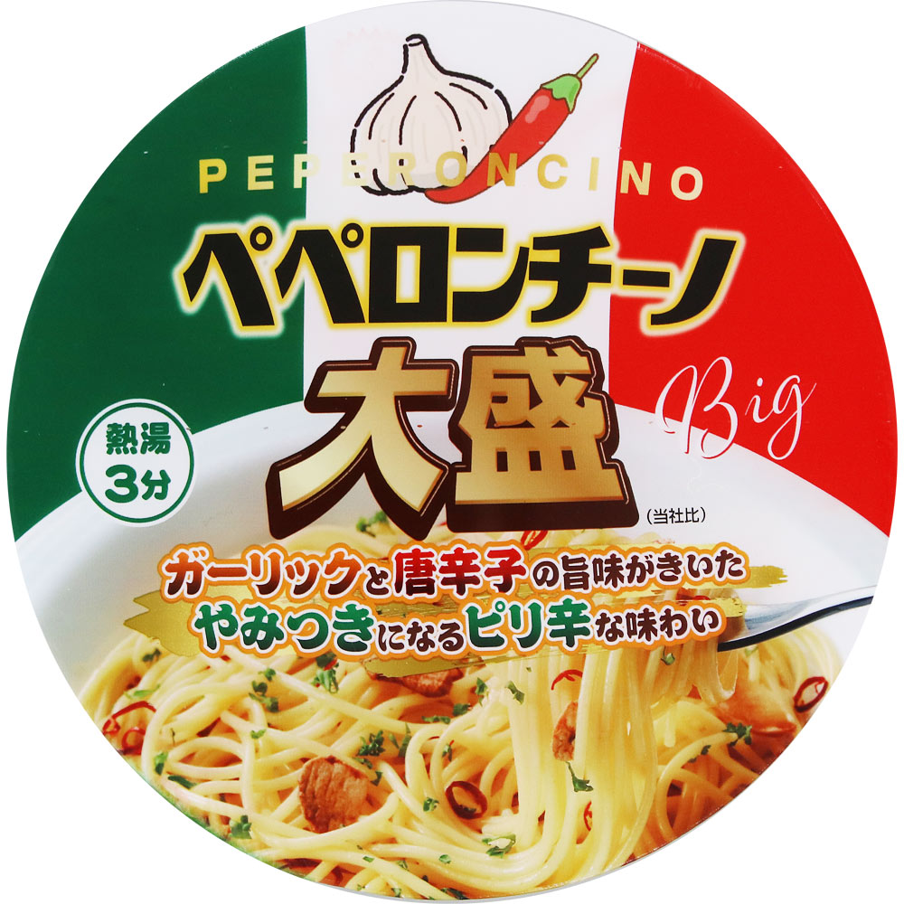 ガーリックと唐辛子の旨味が効いた、癖になるピリ辛な味わいのペペロンチーノ。もちっとした食感の本格的なパスタをお楽しみいただけます。熱湯3分、忙しいときにもサッと食べられる即席麺タイプ。ボリュームたっぷりの大盛サイズです。