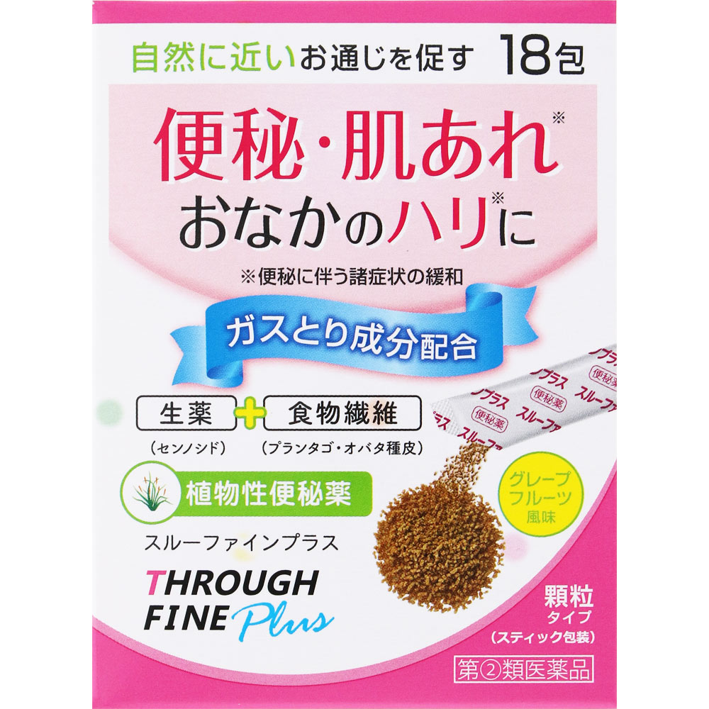 生薬成分のセンノシドと食物繊維のプランタゴ・オバタ種皮を配合した、植物性便秘薬です。自然に近い、スムーズなお通じを促します。また、腸内で発生したガスを排出しやすくするジメチルポリシロキサンが、おなかのハリを改善。飲みやすいグレープフルーツ風味の顆粒剤で、便通に合わせて量の調整も可能です。携帯に便利な、スティックタイプ包装。18包入り。