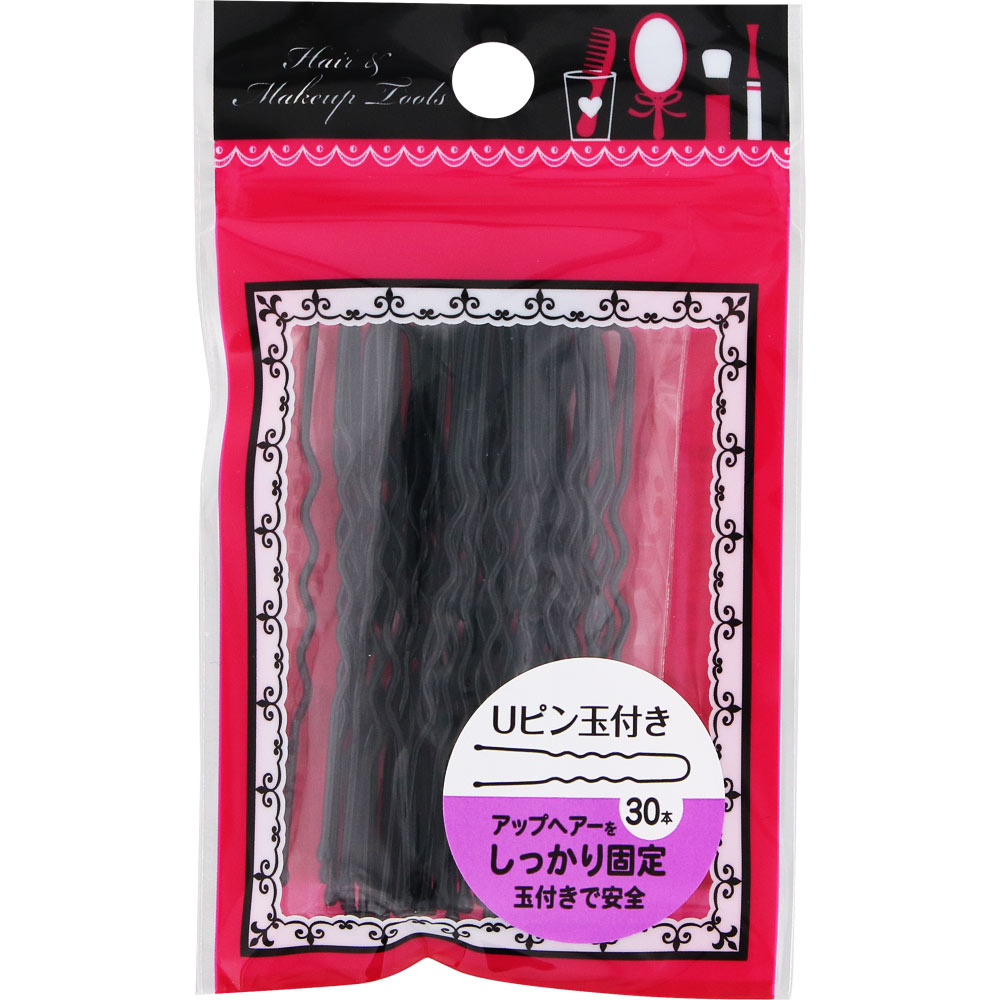 まとめ髪に便利な玉付のUピン30本セット。玉付なので痛くない、アップヘアの必需品です。