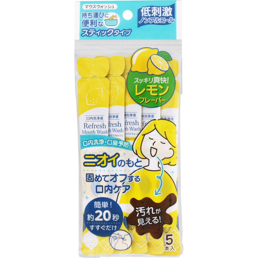 1回使いきりタイプで、どこでも簡単に口内ケアができるマウスウォッシュ。お口の中で約20秒すすぐだけで、ニオイの元を洗い流します。スティックタイプの個包装なので、外出先でも手軽にサッと使えて便利。スッキリ爽快なレモンフレーバーで、気分もリフレッシュできます。低刺激、ノンアルコールタイプ、5本入り。