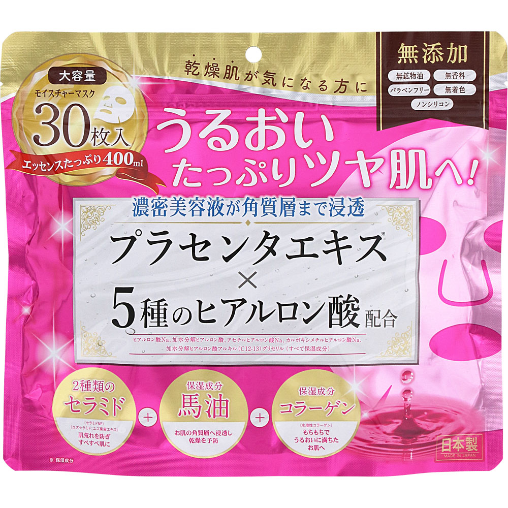 ヒアルロン酸やセラミド、馬油、コラーゲンなどのエッセンスをたっぷり400mL含んでおり、ハリと弾力あるうるおいのある肌に導きます。これ1枚で、化粧水、乳液、美容液、クリームの4役を担うため、洗顔後はこれだけでOK! 乾燥が気になる方におすすめのフェイスマスクです。