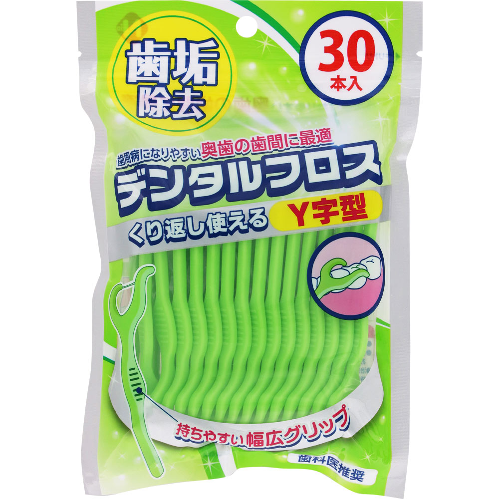 持ちやすく操作しやすい、Y字型のデンタルフロスです。歯周病になりやすい奥歯にラクに入り、歯間部の歯垢や食べかすを効率的に除去します。洗ってくり返し使える、耐久性のある高分子量フロスを採用。30本入り。