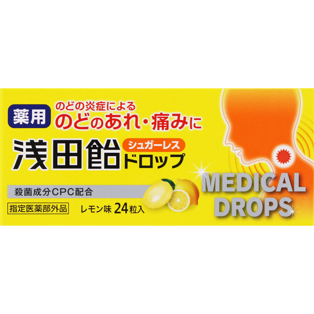殺菌成分のセチルピリジニウム塩化物水和物(CPC)配合の薬用のど飴です。のどの痛みやはれ、不快感を感じたときなどに、かまずにゆっくり溶かして服用してください。カロリーや糖分が気になる方も服用できるシュガーレスです。すっきりとしたレモン味。