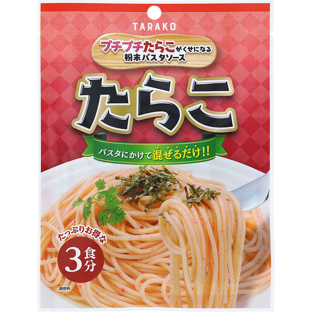 パスタにふりかけて混ぜるだけで、おいしいたらこパスタができあがります。プチプチのたらこがくせになるバランスの良い味わい。きざみのりやネギをトッピングしてお召し上がりください。3食入り。