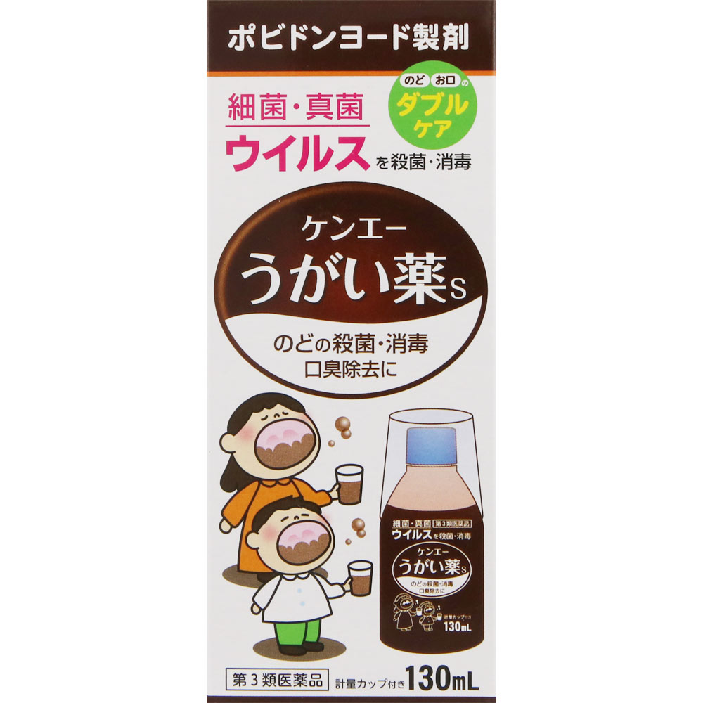 ウイルスやバイ菌に効果を発揮する、ポピドンヨード配合のうがい薬。のどの殺菌・消毒、口臭の除去などに、必ず水でうすめてご使用ください。130mL。