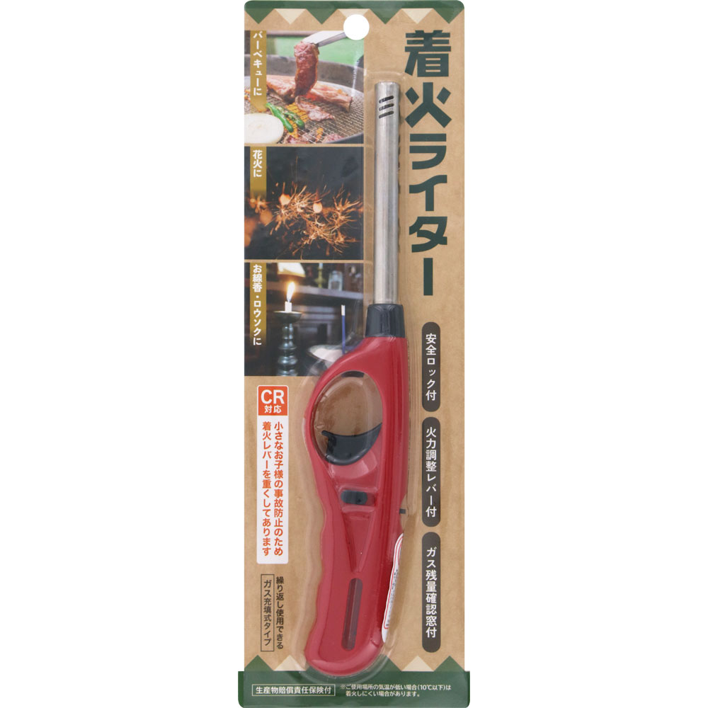 安全ロック付、火力調整レバー付、ガス残量確認窓付の着火ライターです。小さなお子さまの事故防止のため、着火レバーを重くしてあります。バーベキューや花火など、さまざまな用途でお使いください。