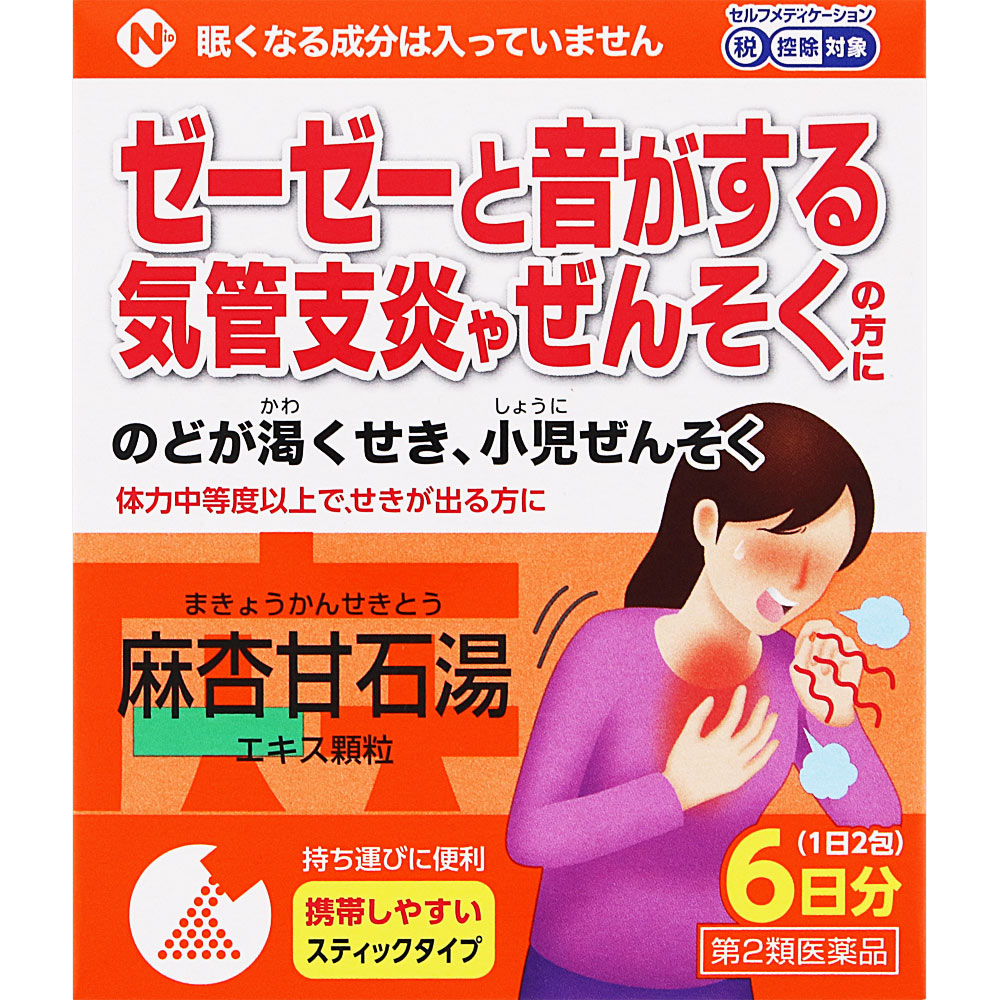 漢方処方の「麻杏甘石湯」エキスを飲みやすいスティック顆粒タイプにしました。ゼーゼーと音が出るせきや小児ぜんそく、気管支ぜんそくなどの症状を改善します。眠くなる成分は入っていません。12包入り。