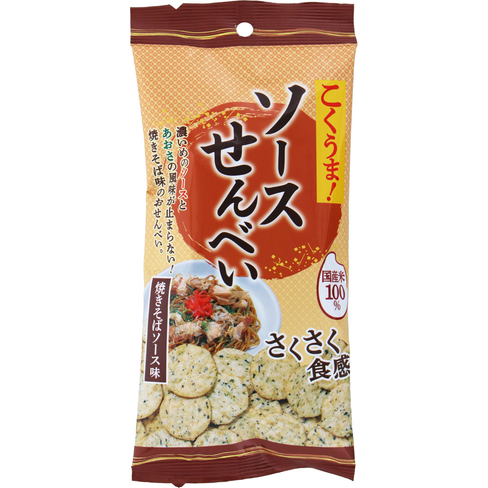 濃いめのソースがおいしい、焼きそばソース味のおせんべいです。あおさの風味とさくさく食感がくせになるおいしさ。一口サイズで食べやすく、おやつやお酒のおつまみにぴったりです。