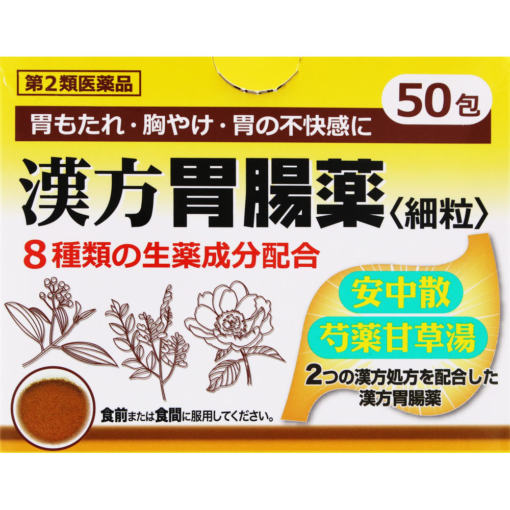 胃腸のはたらきを活発にする<安中散>と胃腸の筋肉の緊張をやわらげる<芍薬甘草湯>の2種類の漢方を組み合わせた漢方胃腸薬です。胃もたれ、胸やけ、胃の痛みなどの胃腸症状の改善に効果を発揮します。5歳から服用できます。