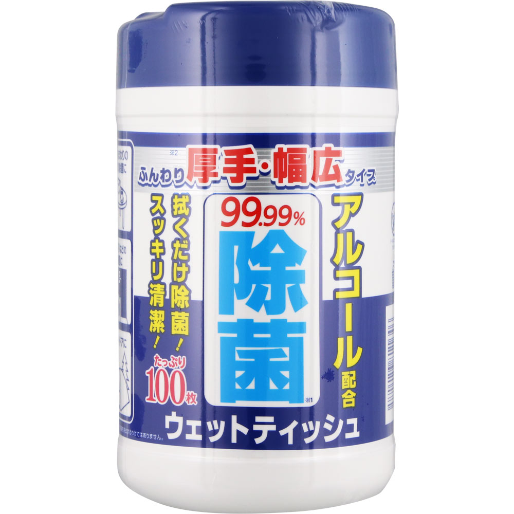 アルコールを配合した、除菌ウェットタオルです。サッと拭くだけで除菌でき、スッキリ清潔に保ちます。従来品に比べて、厚手・幅広で使いやすくなりました。手指の拭き取りのほか、テーブルやキッチン周りの除菌にもお使いください。たっぷり使える100枚入り。