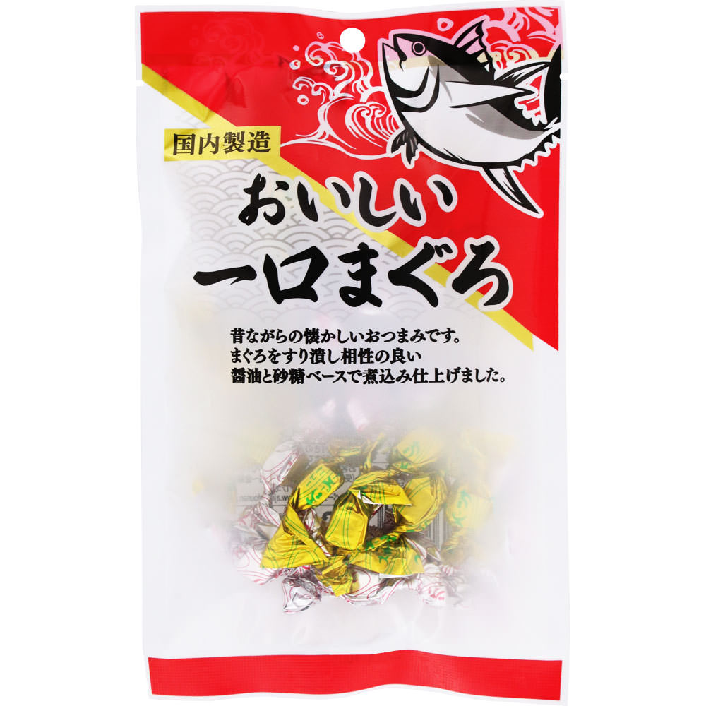 まぐろをすりつぶし、相性のいい醤油と砂糖で煮込み、サイコロ状に仕上げました。一口サイズで食べやすく、老若男女問わずお楽しみいただけます。おやつやおつまみにご家族皆さまでどうぞ。