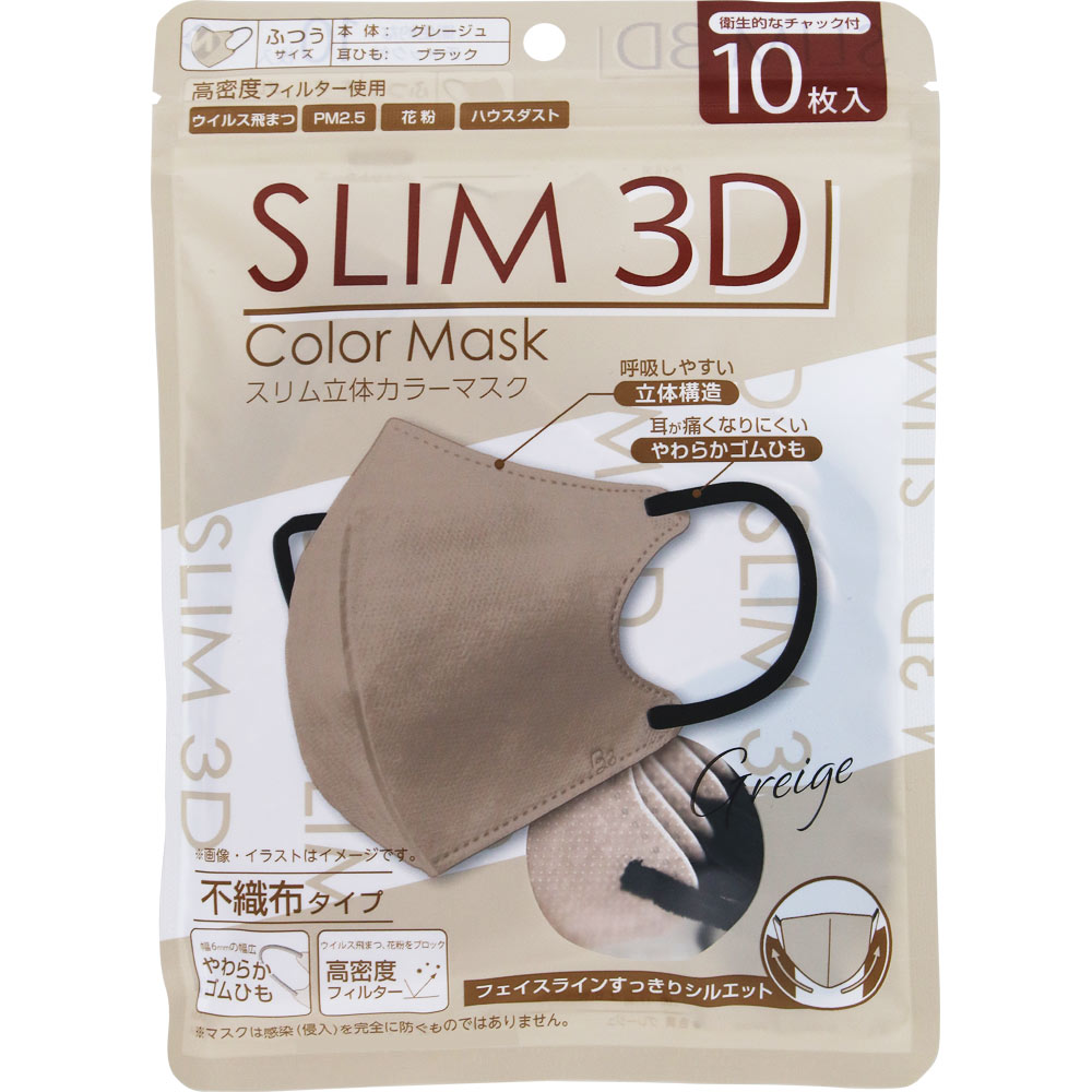 NID スリム立体バイカラーマスク 10枚 グレージュ