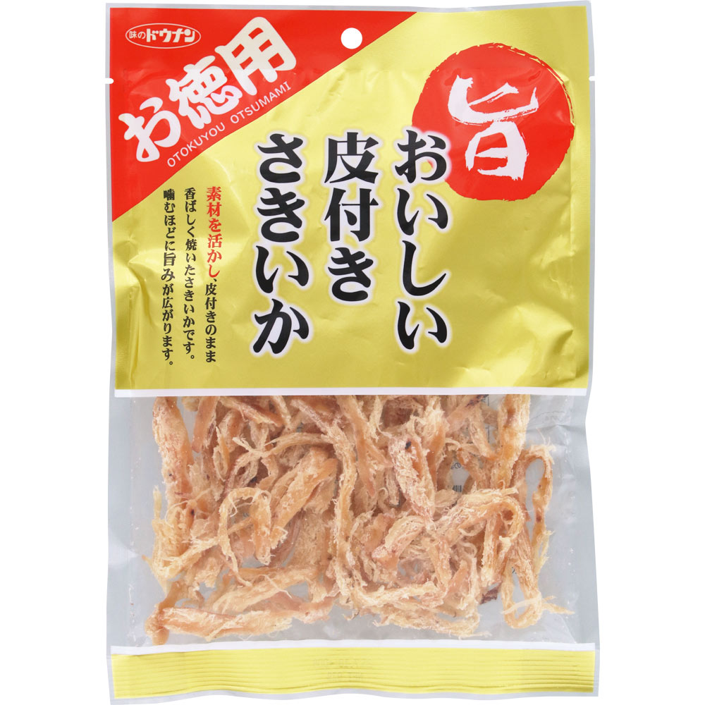 皮のついたいかをそのまま香ばしく焼き上げました。噛めば噛むほど、香ばしい風味、いかの旨味を感じられます。ご家族みなさまで楽しめるお徳用サイズ。