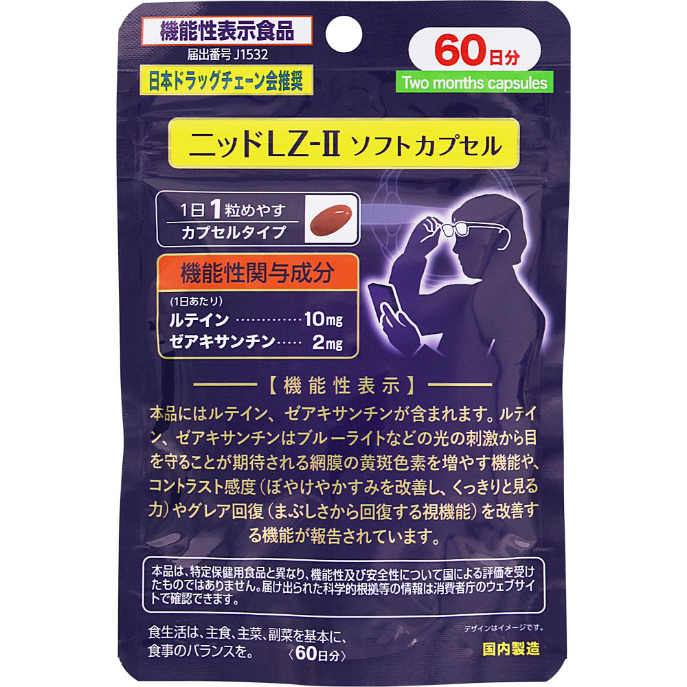目の健康が気になる方に 機能性関与成分として、ルテイン、ゼアキサンチンを含んだ機能性表示食品です。ルテイン、ゼアキサンチンはブルーライトなどの光の刺激から目を守ることが期待される網膜の黄斑色素を増やす機能や、コントラスト感度(ぼやきやかすみを改善し、くっきりと見る力)やグレア回復(まぶしさから回復する視機能)を改善する機能が報告されています。1日1粒を目安にお飲みください。