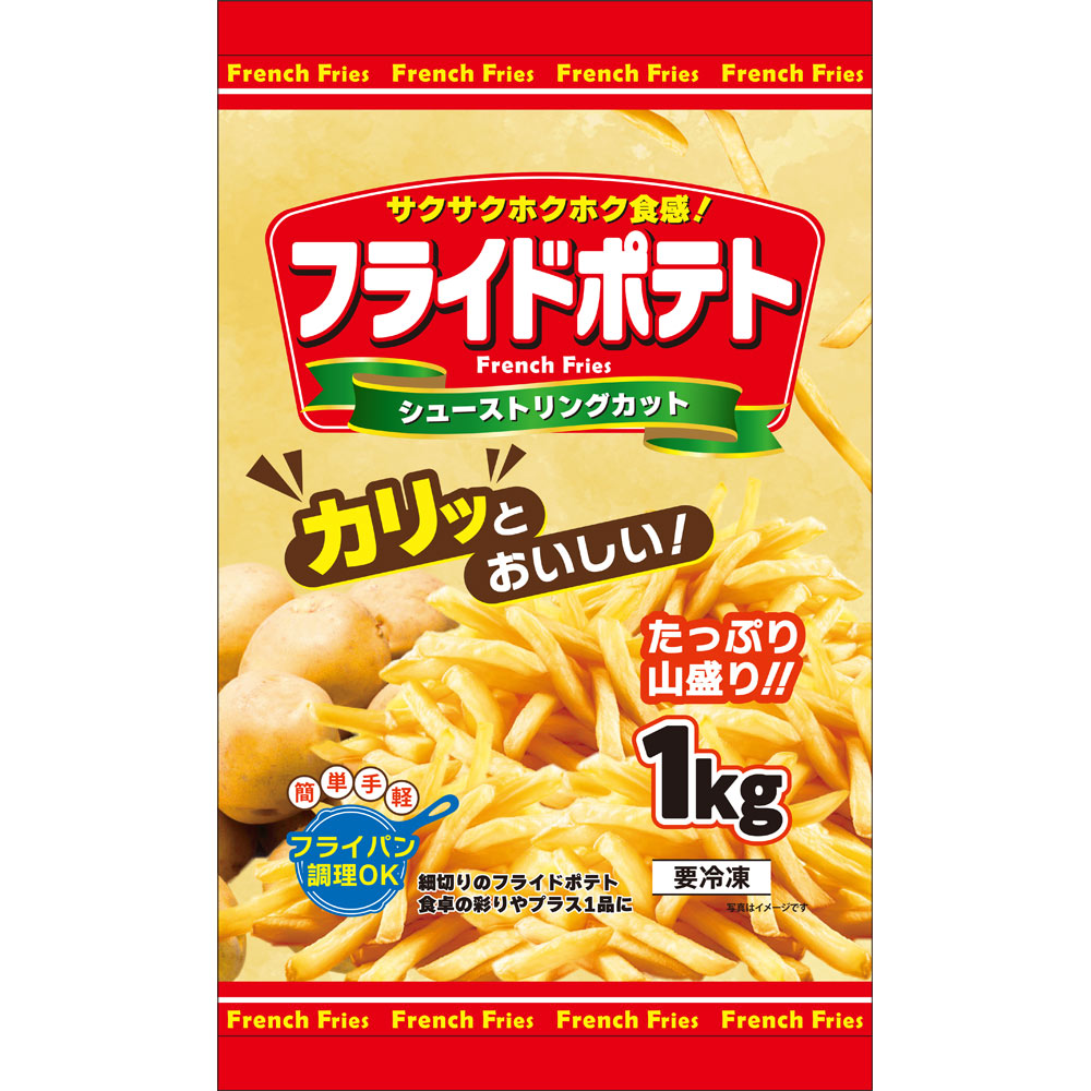 厳選したじゃがいもを軽く湯通ししたあとに、揚げてから急速冷凍しました。180℃の油で2~3分揚げていただくと、カリッとおいしいフライドポテトがお楽しみいただけます。フライパンで簡単に調理が可能! メイン料理の付け合わせや食卓の彩りとしてお使いください。