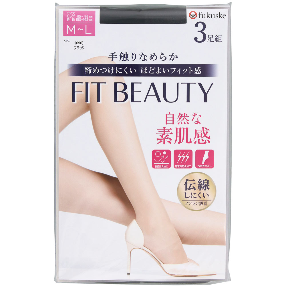 福助 FIT BEAUTY ストッキング ML 3足 ブラック 090