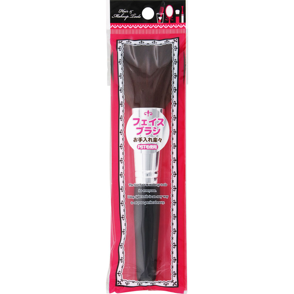 やわらかいPBT毛(ポリエステル系樹脂)を100%使用したフェイスブラシです。パウダーがブラシになじみ、肌に均一にのせることができます。自然な仕上がりを目指したい方におすすめです。