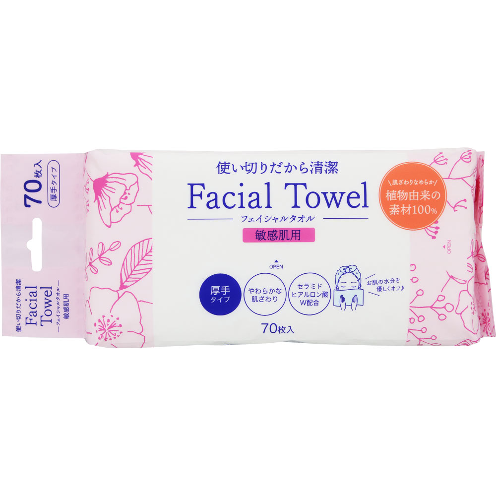 保湿成分のヒアルロン酸&セラミドを配合した、やわらかな肌触りの使い捨てフェイシャルタオルです。やぶれにくく丈夫な厚手エンボス加工で、水分をしっかり吸収します。敏感肌の方にもおすすめ。