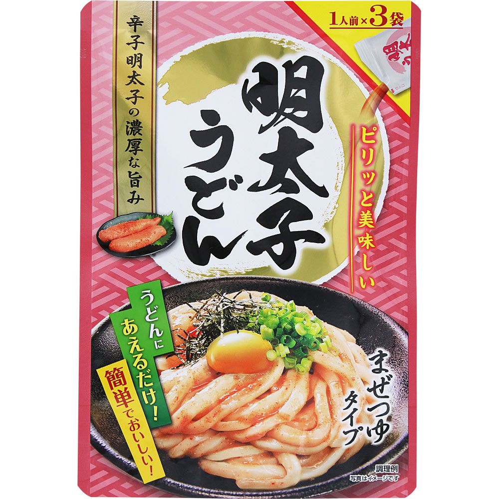 あえるだけで簡単、おいしい! 茹でたうどん1玉に本品1袋をあえたら、明太子うどんのできあがり。ピリッと辛い明太子の濃厚な旨味がお楽しみいただけます。卵黄やネギ、揚げ玉などお好きな薬味を盛り付けてお楽しみください。