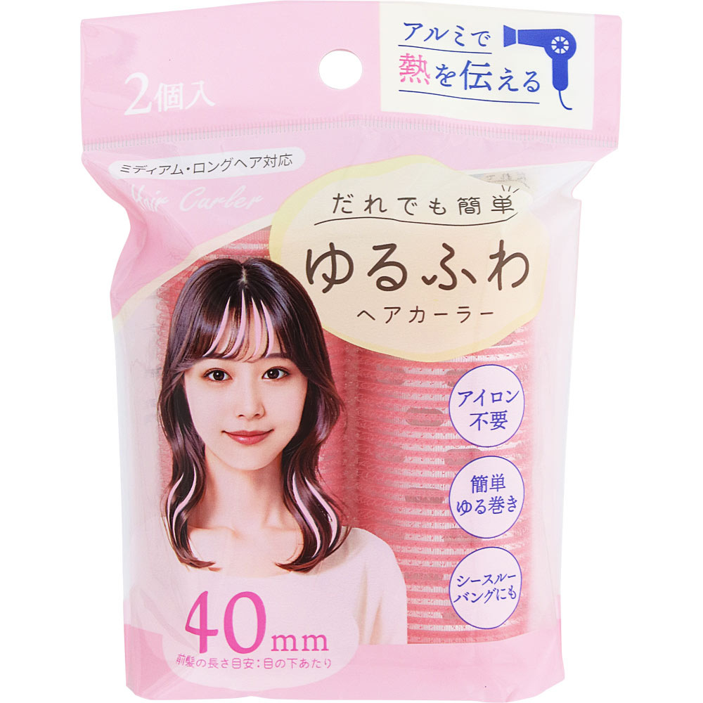 中の芯にアルミ樹脂を使用したヘアカーラー。カーラーで巻いてドライヤーをあてるだけで、簡単にゆるふわスタイルが完成します。軽量樹脂芯、アルミ、ワンタッチテープの三層構造のため、ずり落ちにくくヘアピンなしでもしっかりとまります。前髪のセットにもおすすめ。幅40mm、2個入り。