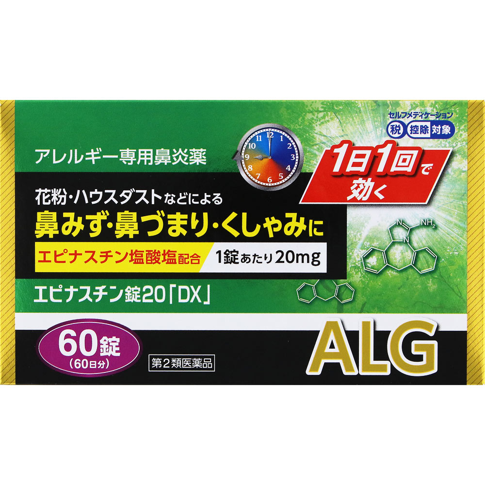 第2世代抗ヒスタミン成分のエピナスチン塩酸塩を配合。1日1回就寝前の服用で、鼻水、鼻づまり、くしゃみなどのアレルギー性鼻炎の症状に効果を発揮します。15才以上で1回1錠を服用してください。60日分。