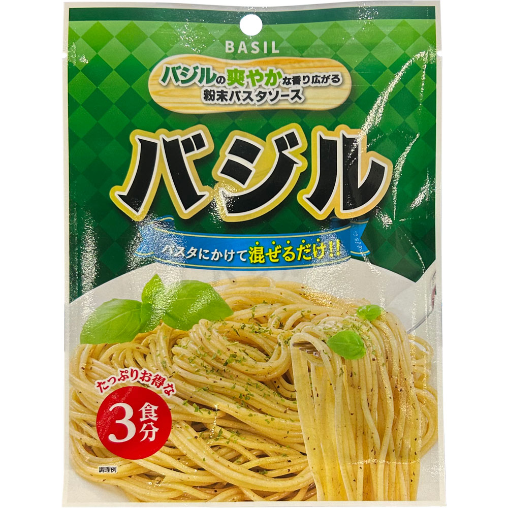 バジルの香りとチーズのコクが広がる粉末パスタソース。パスタにふりかけて混ぜるだけで、簡単においしいバジルパスタができあがります。時間がない日の夕食やパパッと済ませたい昼食などにどうぞ。3袋入り。